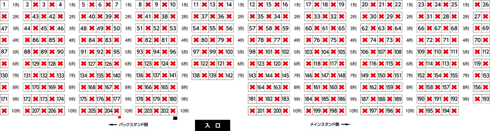 ご購入頂いた整理券番号の位置でご観戦いただきます。