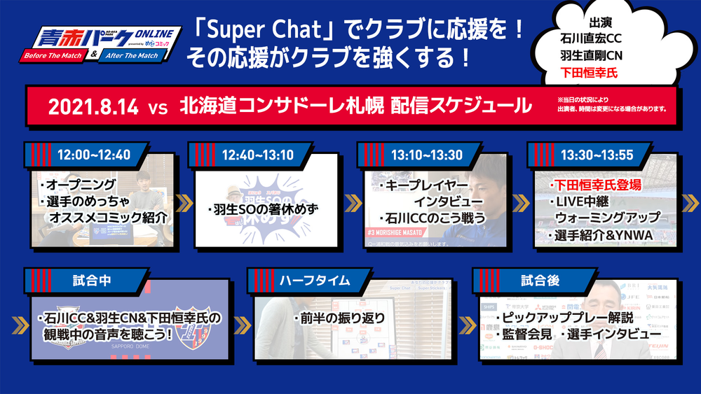 8/14(土)札幌戦『青赤パークオンラインBefore/After The Match presented by めちゃコミック』開催のお知らせ