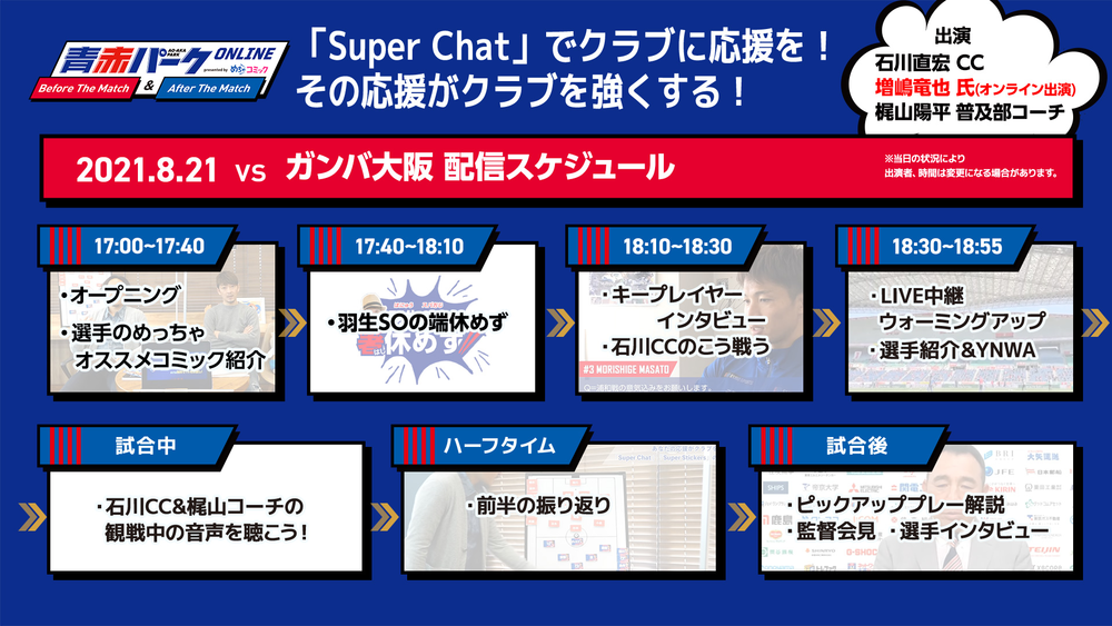 【8/20 追記】8/21(土) G大阪戦『青赤パークオンラインBefore/After The Match presented by めちゃコミック』開催のお知らせ