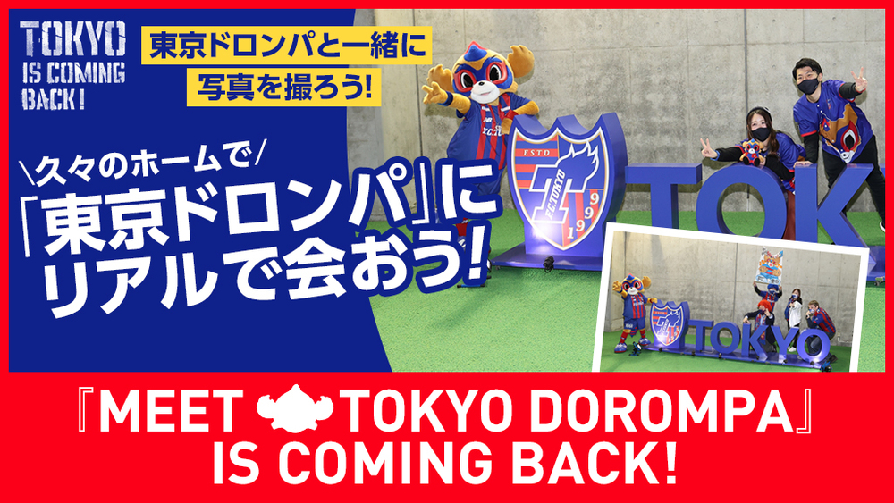 アウェイ7連戦を終えて77日ぶりに開催される味の素スタジアムでのホームゲームに、チームマスコット「東京ドロンパ」と写真撮影ができる「MEET TOKYO DOROMPA」も帰ってきます!