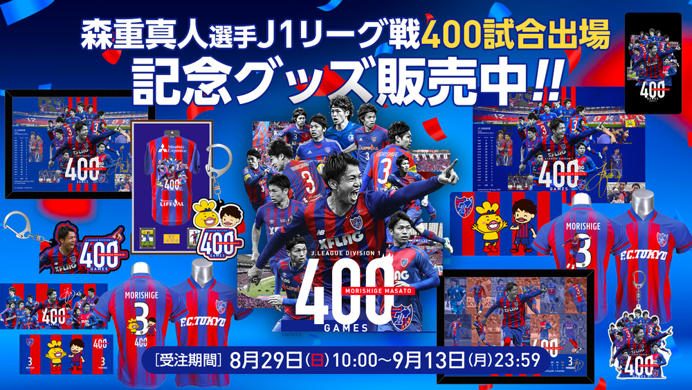 8月28日(土)2021明治安田生命J1リーグ vsヴィッセル神戸戦にて、森重真人選手がJ1リーグ戦通算400試合出場を達成いたしました。これを記念して、森重選手の過去のプレー写真をセレクトしデザインした『400試合記念ロゴ』を使った商品や、おでんくん×森重真人選手のコラボ商品も多数ご用意いたしました!