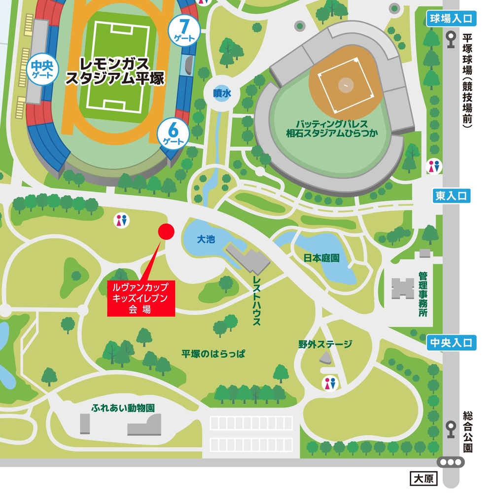 プレゼントのお渡しは、平塚市総合公園大池付近総合案内所にて実施いたします(ハーフタイム以降~試合終了30分後まで)。