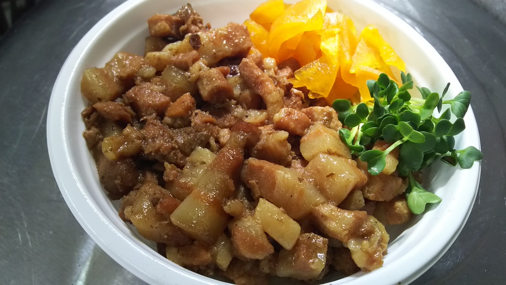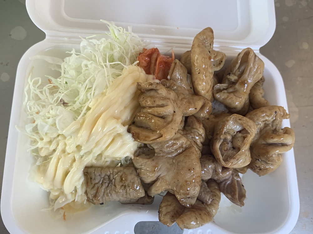 特製のタレを付け鉄板で焼き上げた豚バラ肉の、ご飯との相性は抜群です。