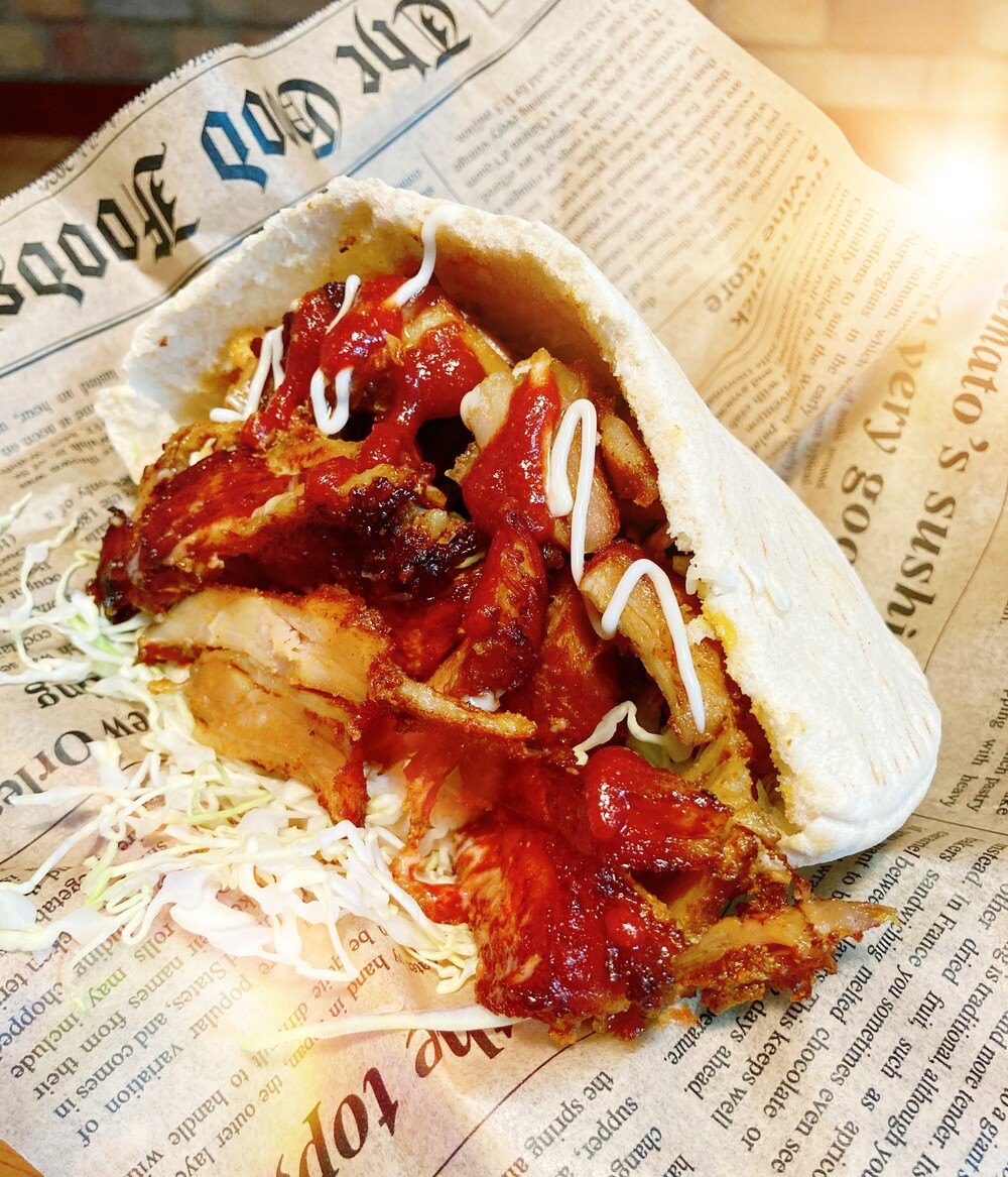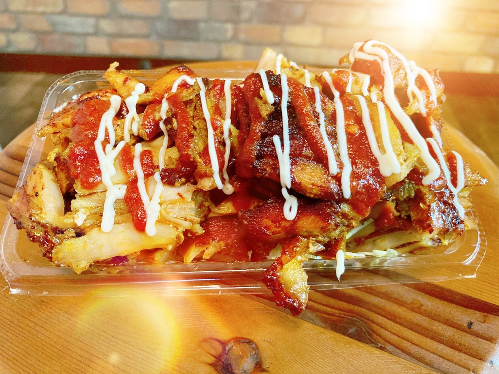 独自ブレンドのスパイスに漬け込んだ鶏モモ肉を専用グリルでじっくり焼き上げ、お客様の目の前で切り分けます。ピタパン無しで、お肉を楽しんでいただけます。