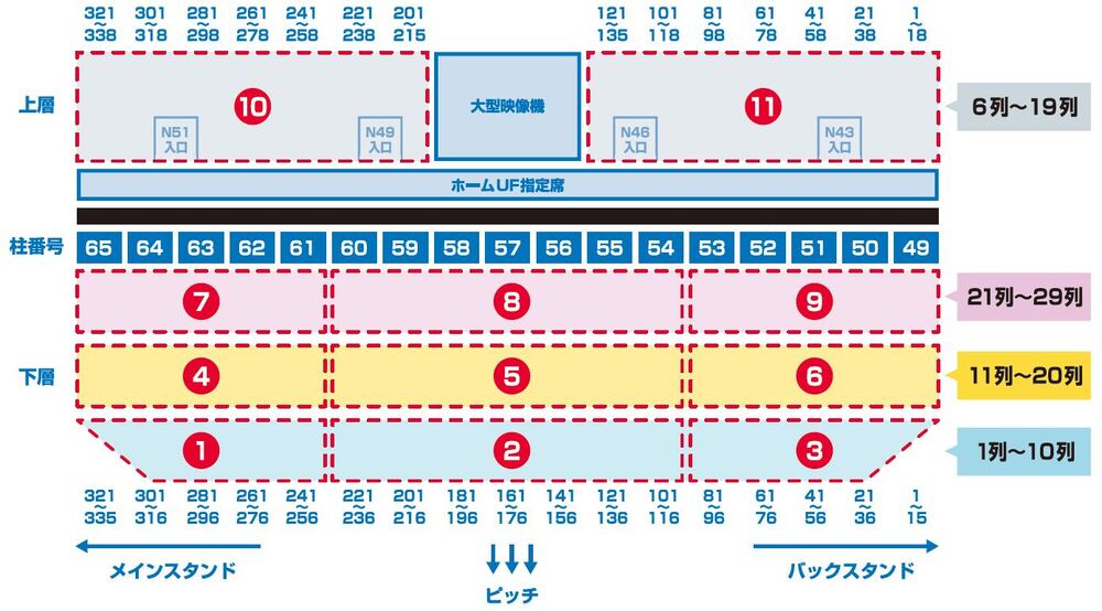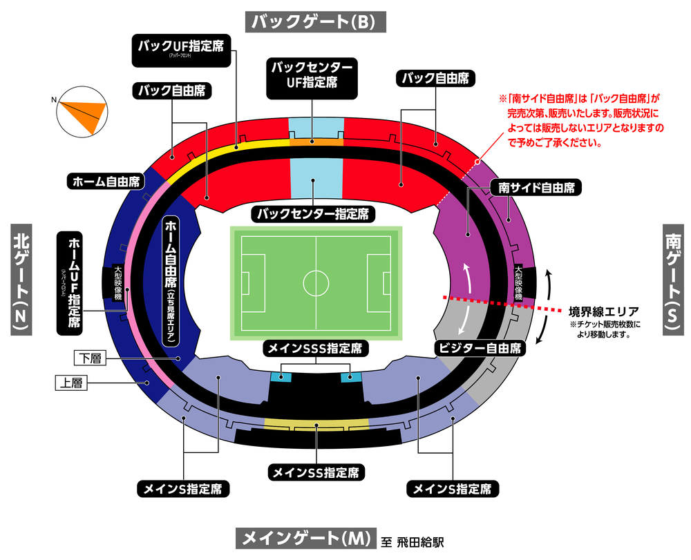 ・北側(ホームより)の2ブロックを年間チケットとして販売いたします。