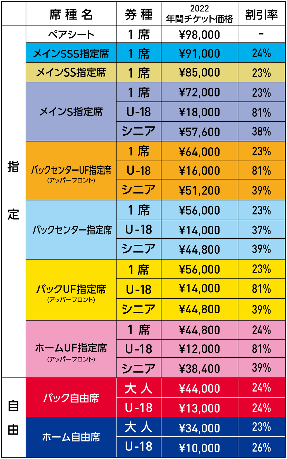 2021シーズンは「払戻方式」にて年間チケットを販売させていただきましたが、SOCIOの方にご回答いただいたアンケート結果を踏まえて2022シーズンは「事前配席方式」と「払戻方式」をご用意いたします。