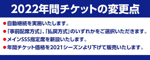 2022シーズンより「2022年間チケット」および「2022クラブサポートメンバー」ともに自動継続を実施いたします。