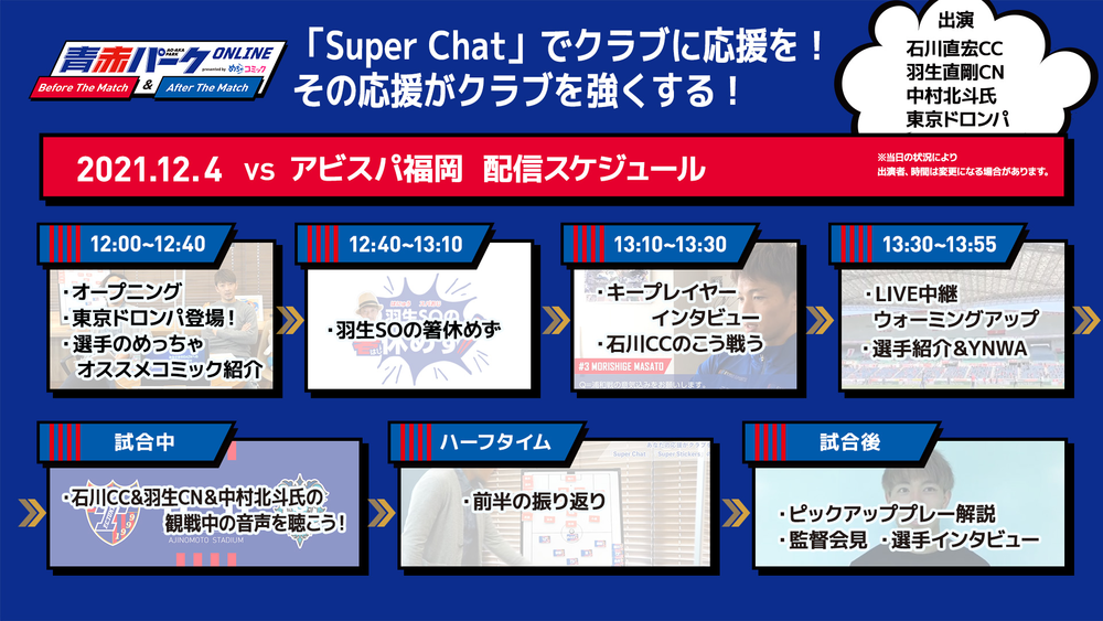12/4(土) 福岡戦『青赤パークオンラインBefore/After The Match presented by めちゃコミック』開催のお知らせ