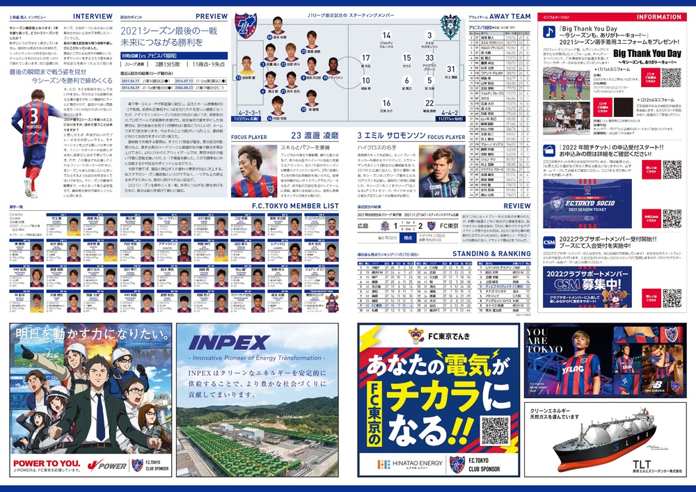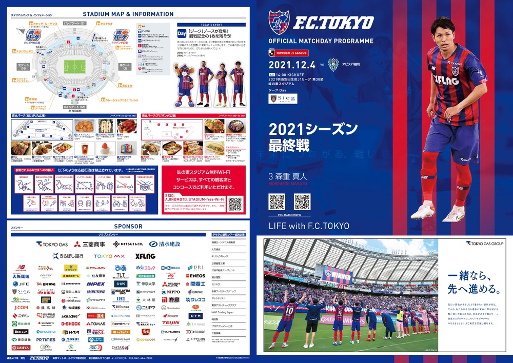 12月4日(土) 2021明治安田生命J1リーグ 第38節 vs (14:00キックオフ/味の素スタジアム)のオフィシャルマッチデープログラムについて、下記のとおりご案内いたします。