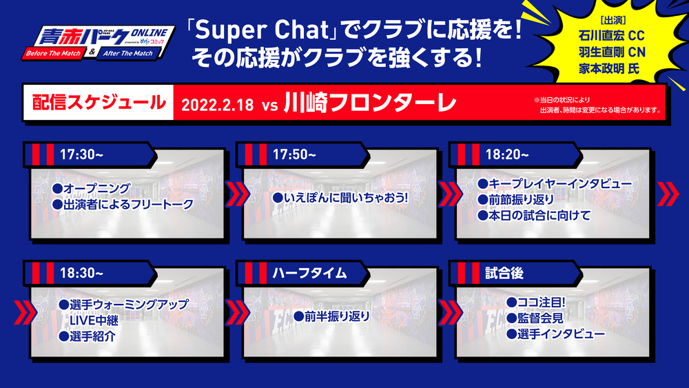 ① 『青赤パークオンラインBefore The Match presented by めちゃコミック』(試合前)