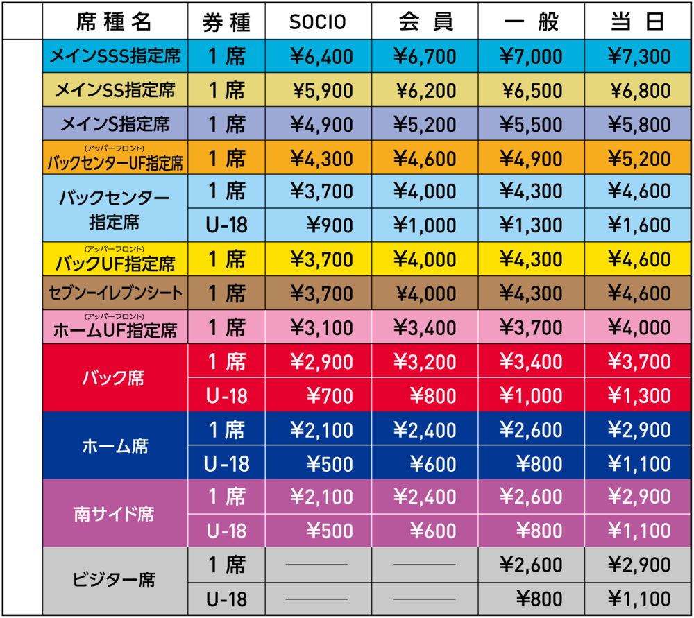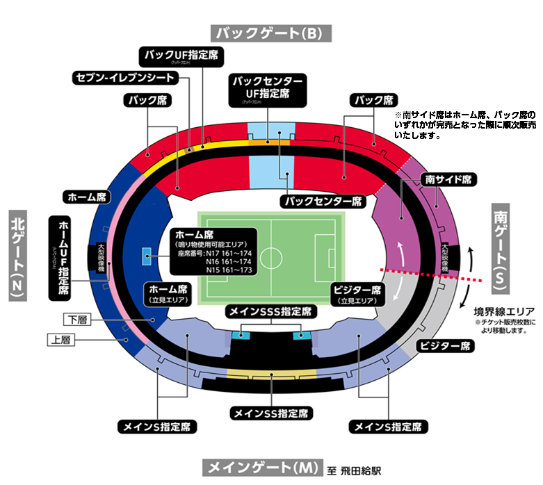 ※南サイド席はホーム席、バック席のいずれかが完売となった際に順次販売いたします。
