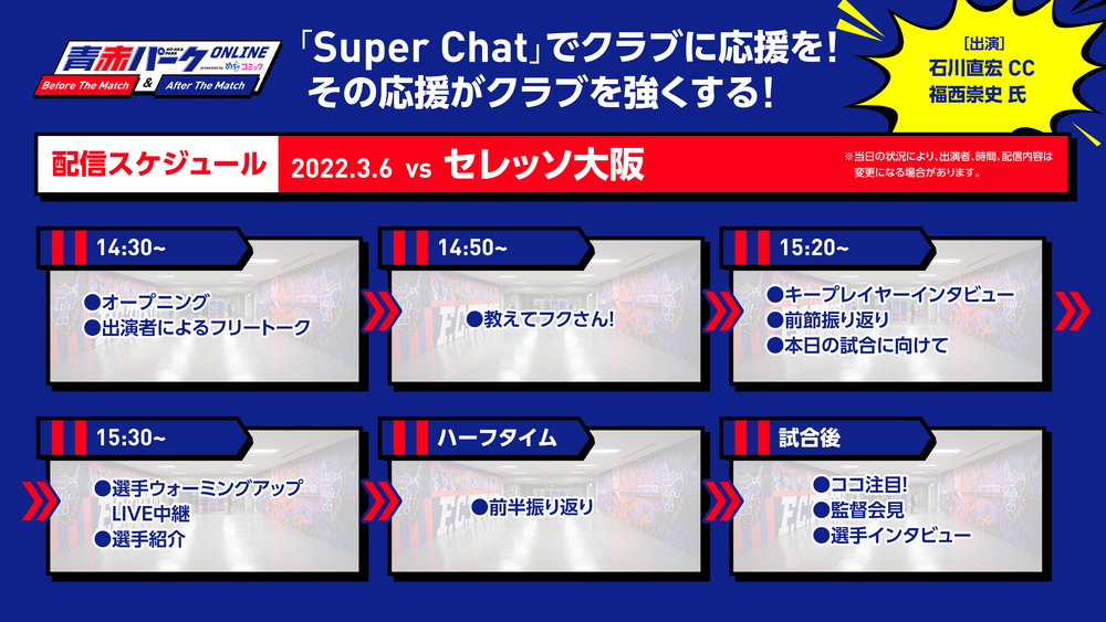 ① 『青赤パークオンラインBefore The Match presented by めちゃコミック』(試合前)