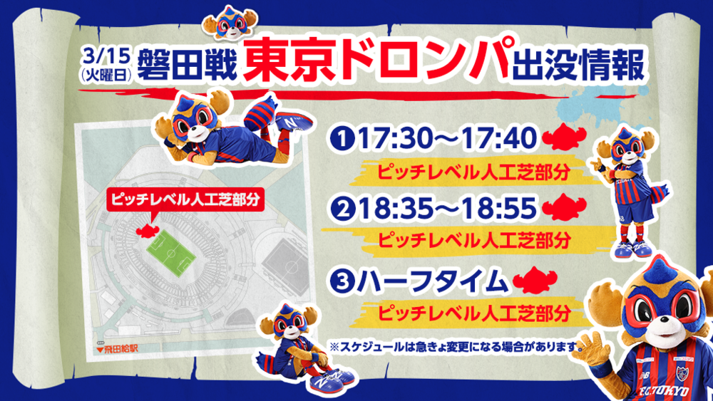 3/15(火) 磐田戦『東京ドロンパ』出没情報!