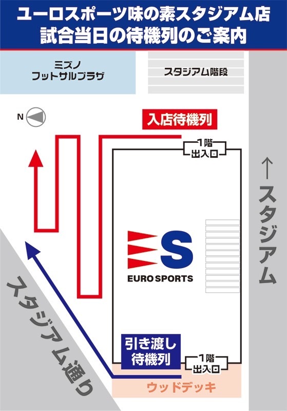 また試合日当日はご予約商品の引き渡し(当日受付のユニフォーム等含む)がスムーズに行えるよう、道路側出入口に引き渡しカウンターを設置いたします。
