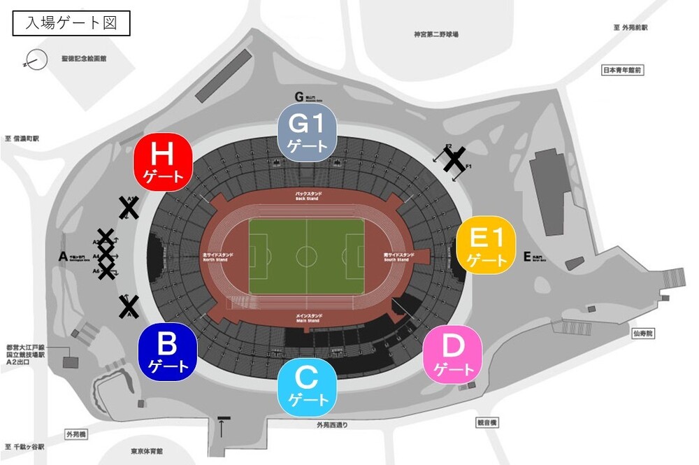 (2) 席種によって入場ゲートが異なります。お手持ちのチケット席種と下記入場ゲートを必ずご確認の上ご入場ください。