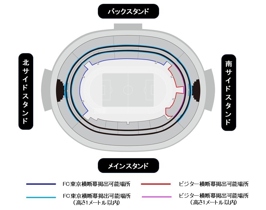 ビジターチームユニフォーム及びグッズを身に着けた方は北サイドスタンド(1~3層目)への通行はできません。またFC東京ユニフォーム及びグッズを身に着けた方は南サイドスタンド(1層目)への通行はできませんのでご注意ください。