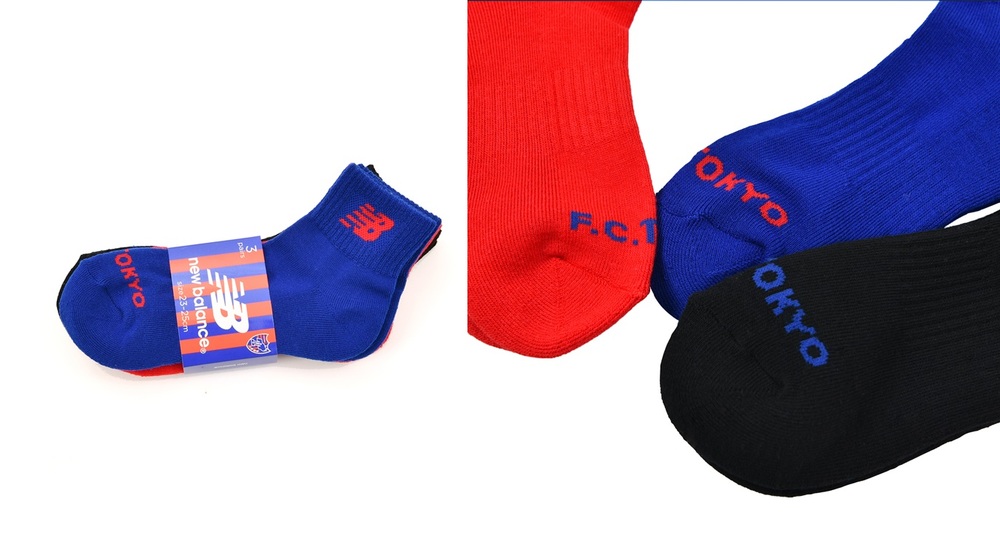 FC東京カラーをイメージした3色セット、『F.C.TOKYO』の文字がデザインされたコラボソックスです!