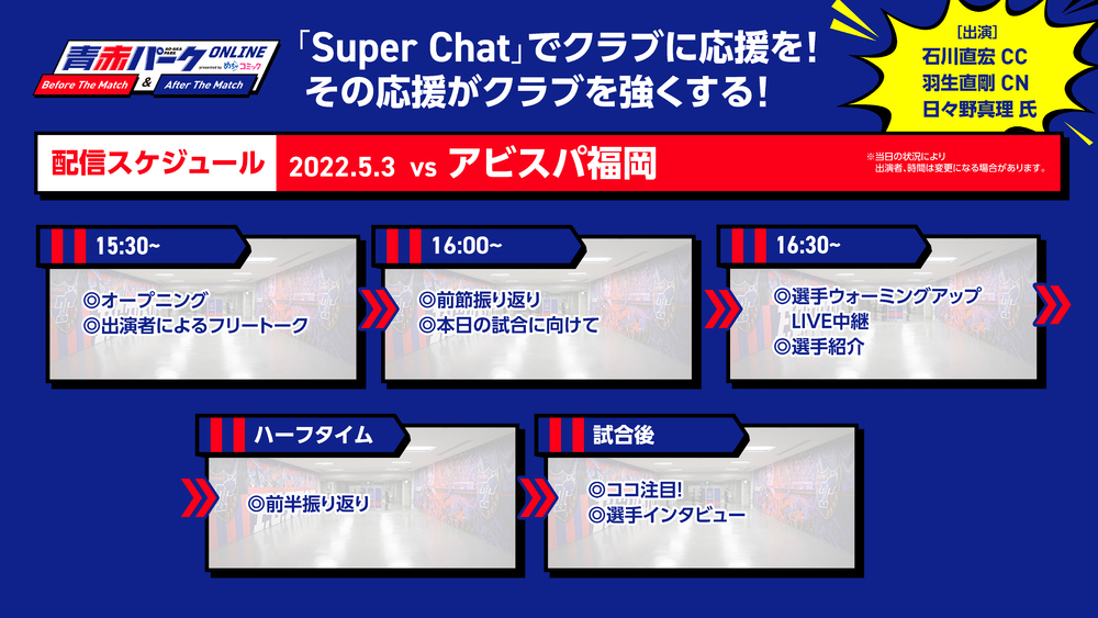 ① 『青赤パークオンラインBefore The Match presented by めちゃコミック』(試合前)