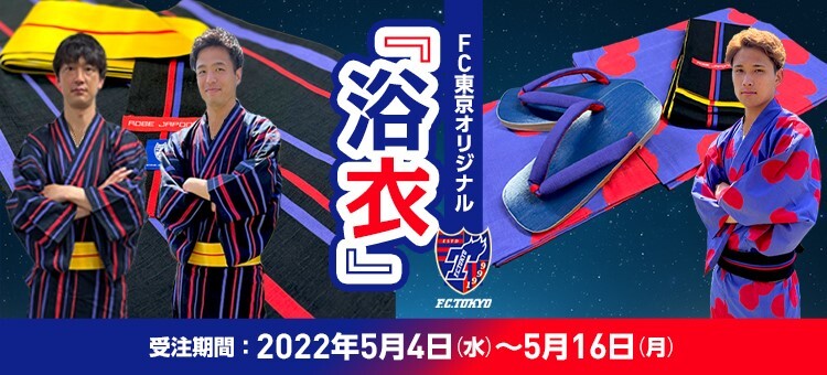 FC東京オリジナルでメンズ・レディース共通の柄の浴衣を3種類、リバーシブル柄の帯、下駄を各1種類ご用意いたしました。今年の夏はこちらの浴衣を身にまとってください!