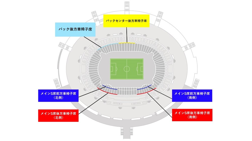 「メインS後方北側」「メインS後方南側」・「バック後方」・「バックセンター後方」車椅子席(旧臨時車椅子/約80席)