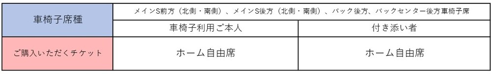 ご観戦いただく車椅子席種に関わらずホーム席のチケットをお買い求め下さい。