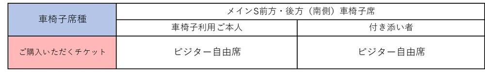 「メインS前方北側」「メインS南側」車椅子席(旧常設車椅子席/各25席)