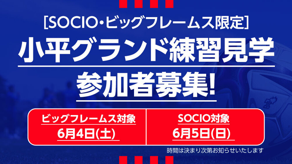 【SOCIO・ビッグフレームス限定!】小平グランド練習見学実施のお知らせ