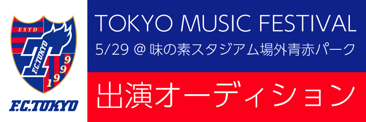 5月29日(日) 2022 明治安田生命J1リーグ 第16節 vs 鹿島アントラーズにて開催される『TOKYO MUSIC FESTIVAL』の一環で、キックオフ前に青赤パークにて設置される特設ステージへの出演をかけたオーディションを開催いたします。