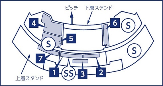 メインSS・メインS指定席の位置は年間指定席エリア内1~7となります。