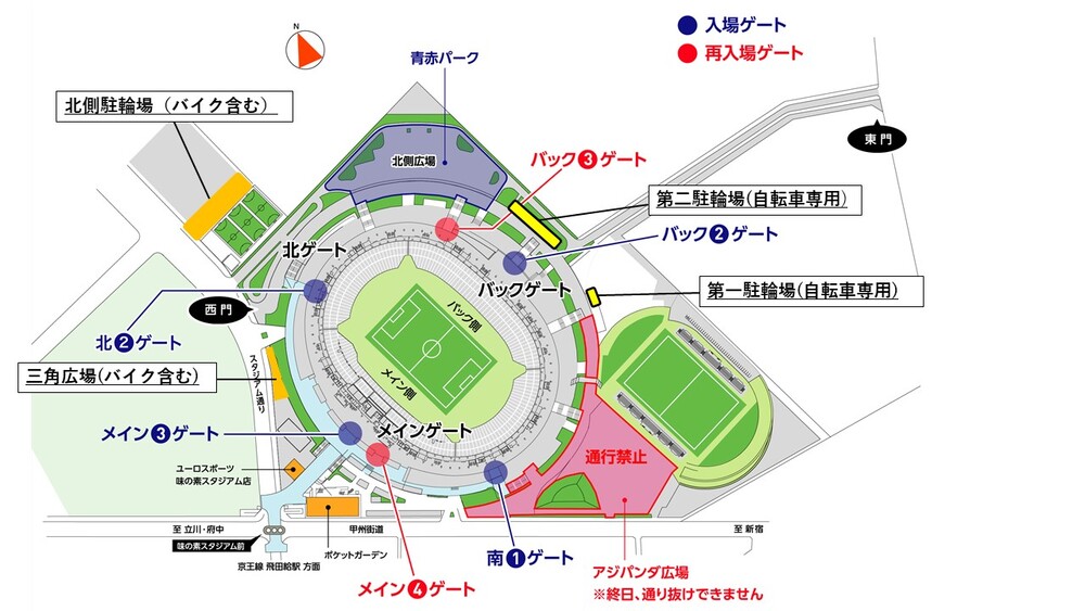 ・味の素スタジアムに一般の駐車場はございませんので、公共の交通機関をご利用ください。