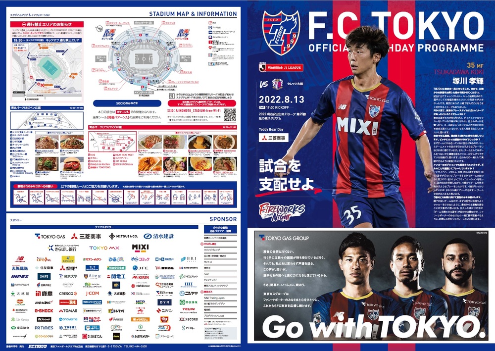 8月13日(土) 2022明治安田生命J1リーグ 第25節 vsセレッソ大阪(19:00キックオフ/味の素スタジアム)のオフィシャルマッチデープログラムについて、下記のとおりご案内いたします。