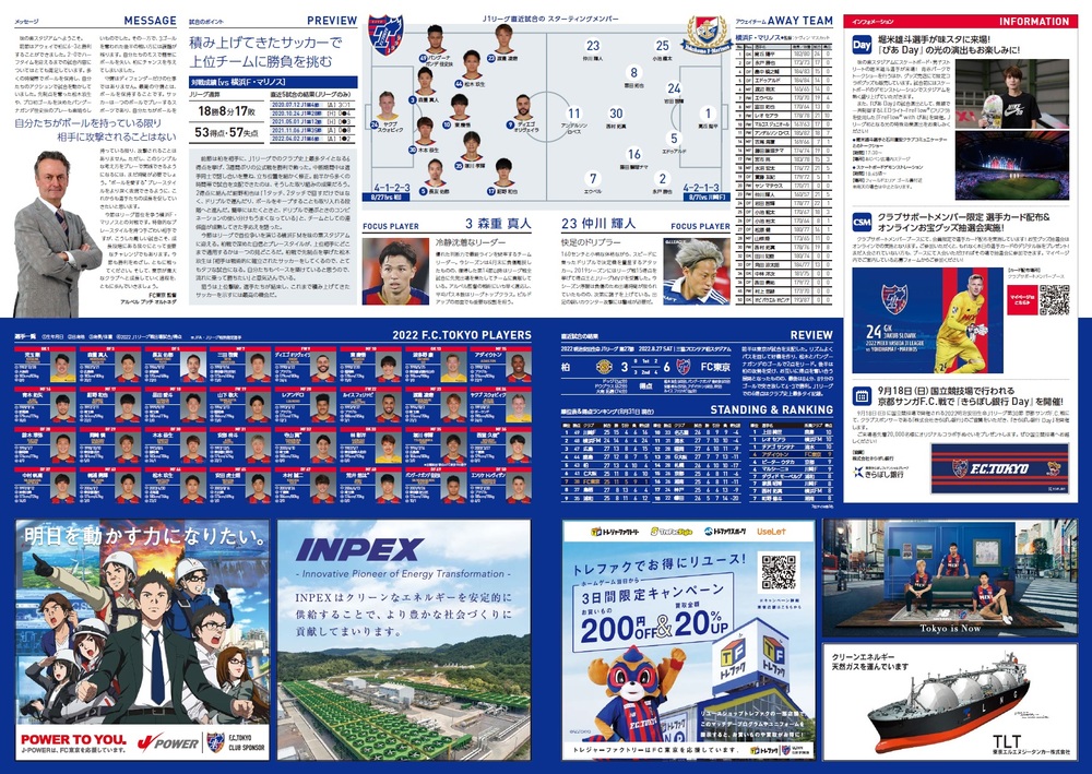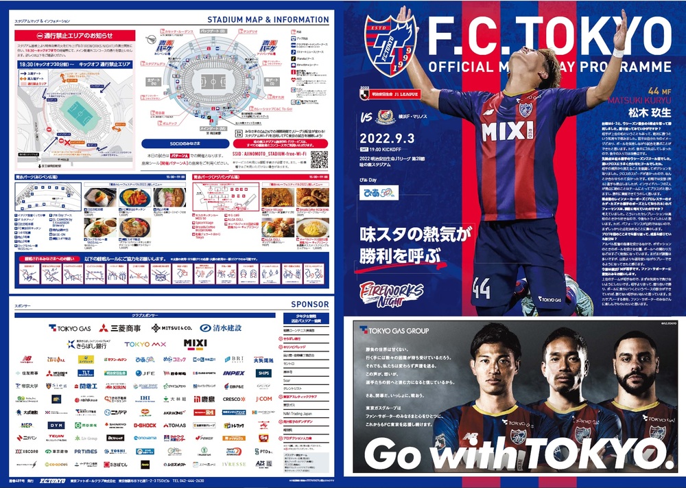 9月3日(土) 2022明治安田生命J1リーグ 第28節 vs横浜F・マリノス(19:00キックオフ/味の素スタジアム)のオフィシャルマッチデープログラムについて、下記のとおりご案内いたします。
