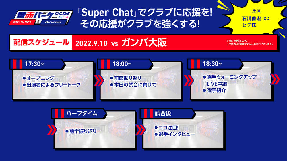 ① 『青赤パークオンラインBefore The Match presented by めちゃコミック』(試合前)