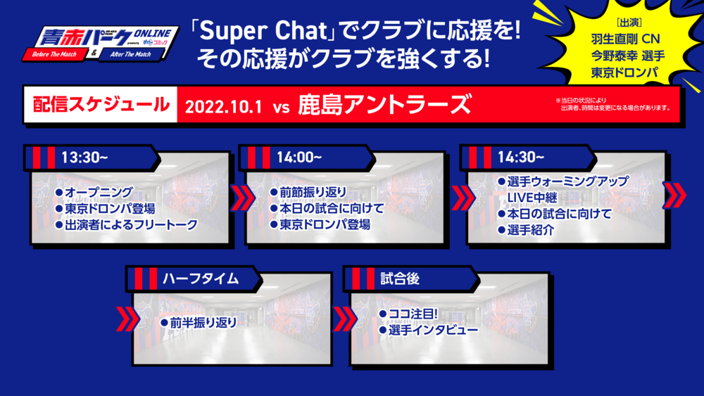 10/1 鹿島戦『青赤パークオンラインBefore/After The Match presented by めちゃコミック』開催のお知らせ