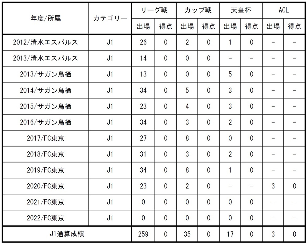 □出場記録(2022年11月4日時点/国内クラブ所属時のみ)