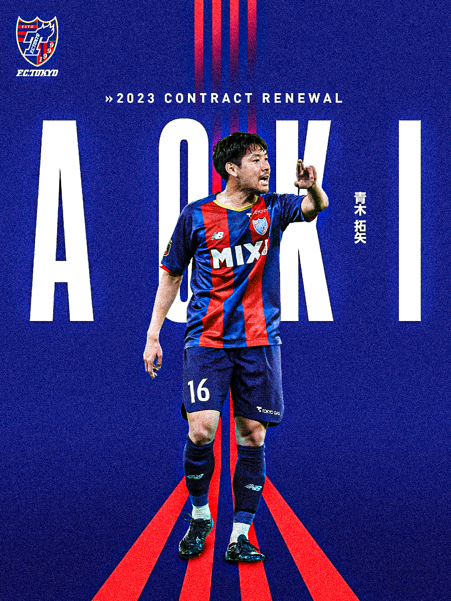 このたびFC東京では、青木拓矢選手と2023シーズンの契約に合意いたしましたのでお知らせいたします。