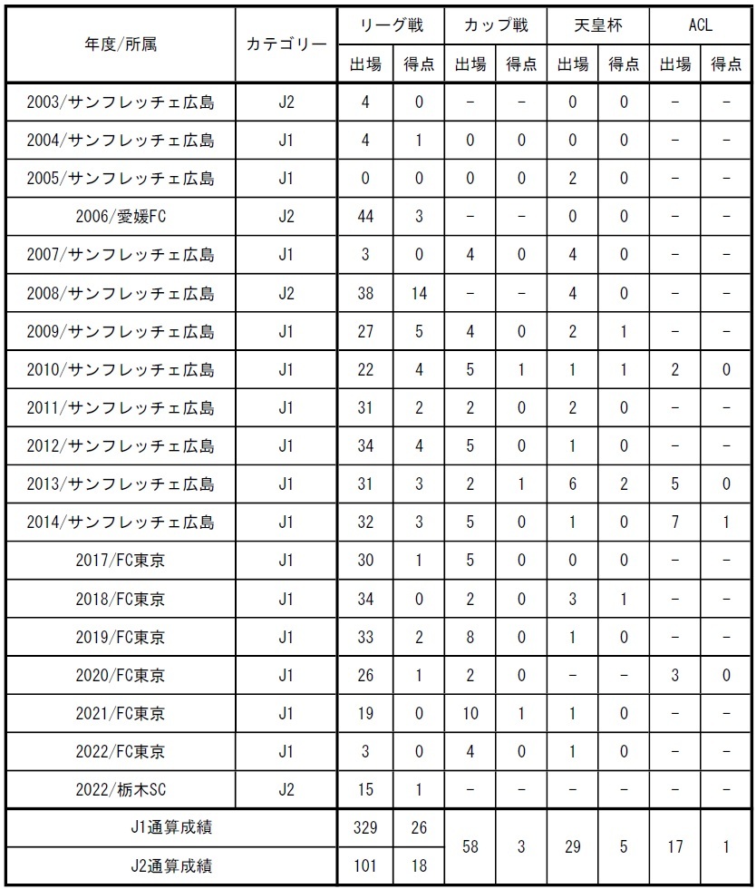 □出場記録(2022シーズン終了時点 国内のみ)