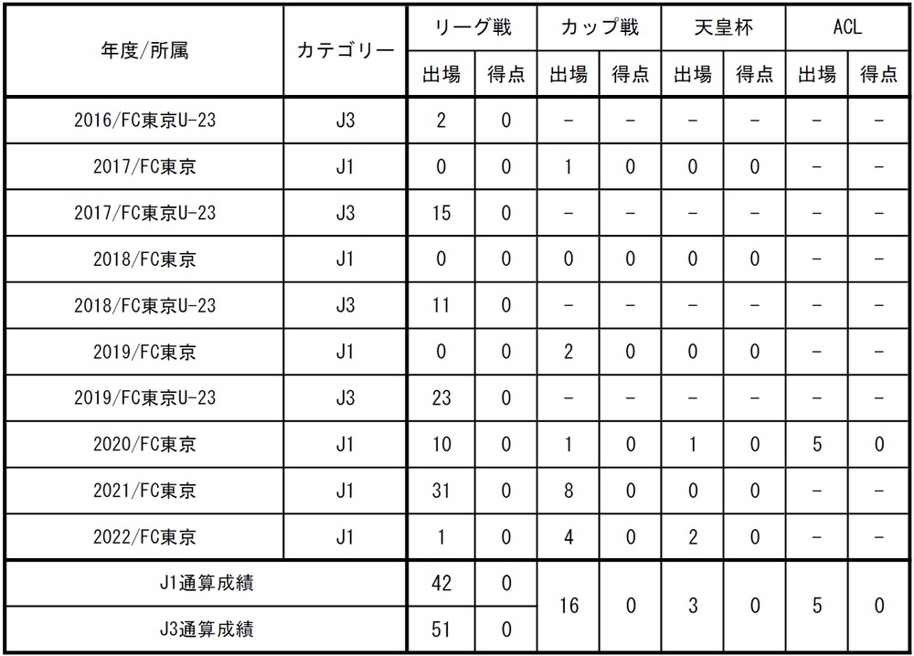 □出場記録(2022シーズン終了時点)