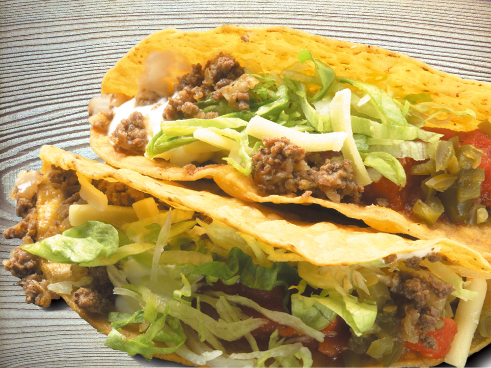 揚げた皮に野菜とミートが詰まったタコス!モグモグ召し上がってください。