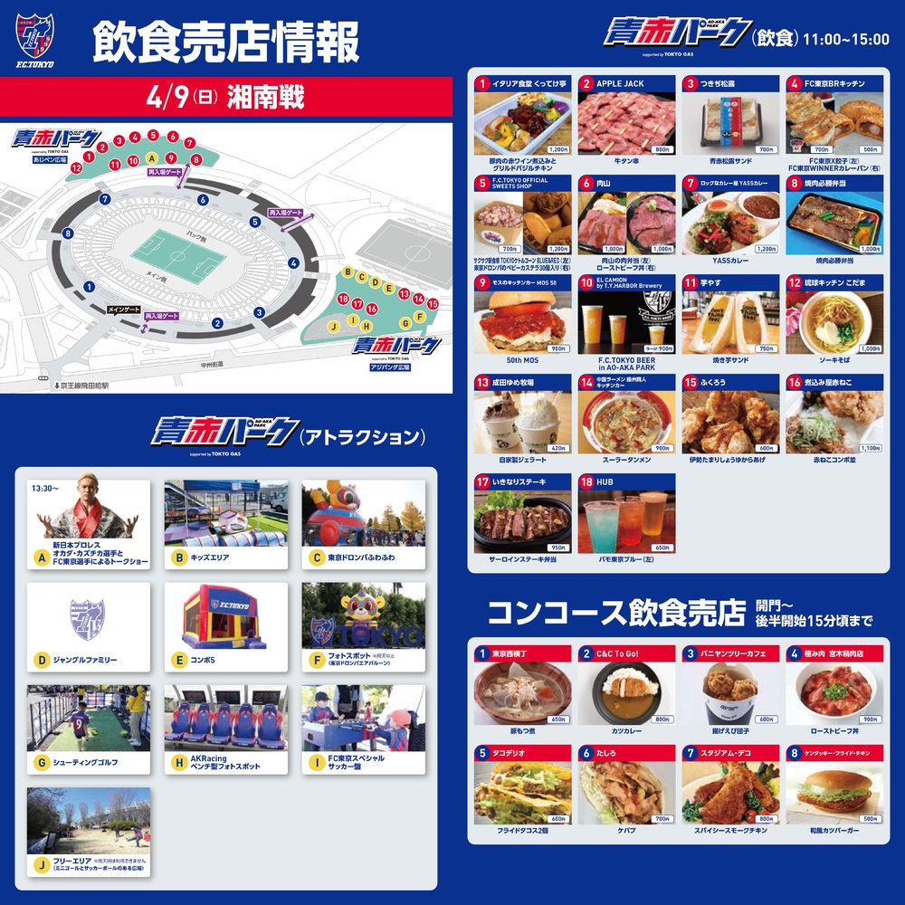 【3/28追記】4/9(日) 湘南戦 飲食情報(青赤パーク&コンコース売店)