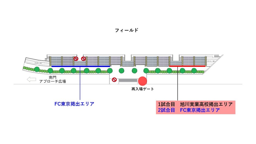 関係者席を除く、全てのエリアがFC東京の観戦・応援エリアとなります。