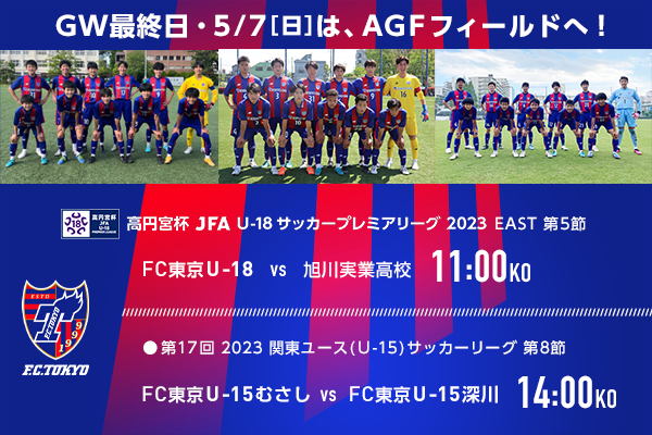 みなさまお誘い合わせの上、AGFフィールドへお越しいただき、FC東京U-18、FC東京U-15むさし、FC東京U-15深川への熱いご声援をよろしくお願いいたします!