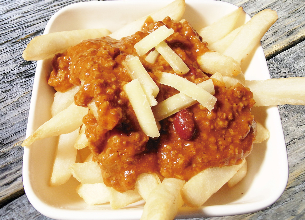 売店仕込みのチリビーンズとポテトの相性は抜群!ビールのおつまみにも最適です。