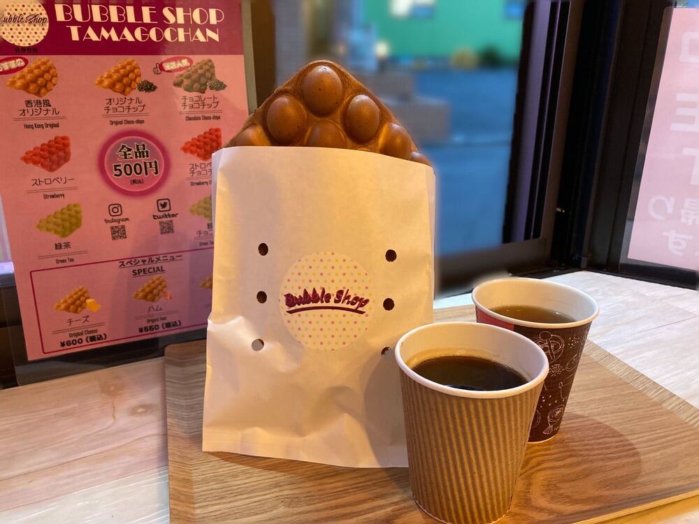 ・香港風ワッフル(オリジナル、オリジナルチョコチップ、ストロベリー、ストロベリーチョコチップ、チョコレートチョコチップ、ハム) 500円