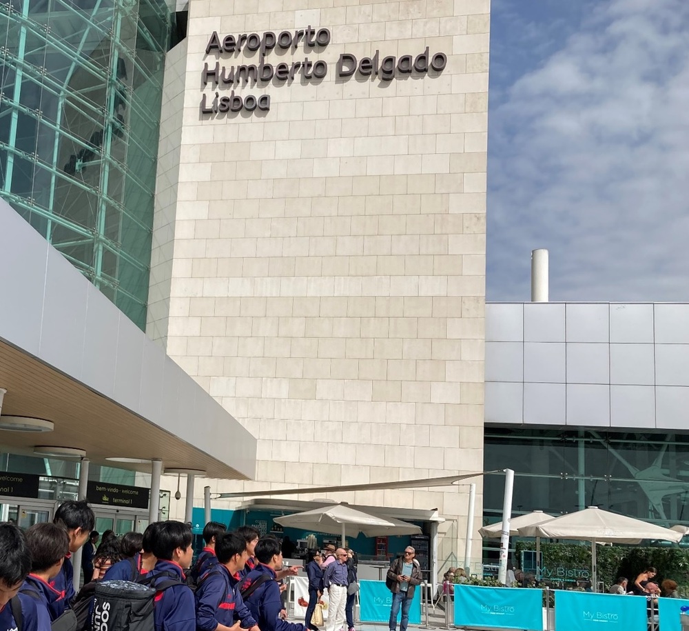 遠征2日目の4日(火)は早朝にホテルをチェックアウトし、マドリード・バラハス空港から飛行機で約1時間20分程度かけ、ポルトガルにあるリスボン・ウンベルト・デルガード空港へ。空港からはバスでリスボン滞在中に宿泊するホテルへ移動。移動時間は30分程度でしたが、リスボンの街並みを堪能しながら移動しました。