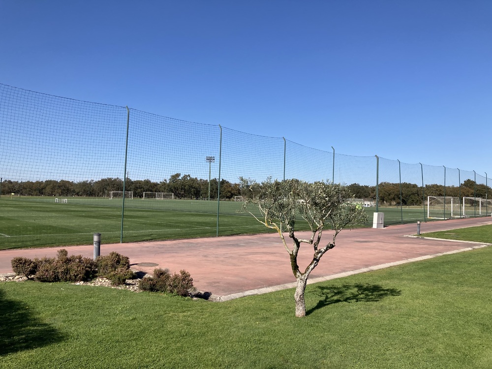 敷地には6面のピッチ、屋根付きの練習場や、クラブハウスなどがあり、幕に覆われたピッチではトップチームが非公開でトレーニングを行っていました。