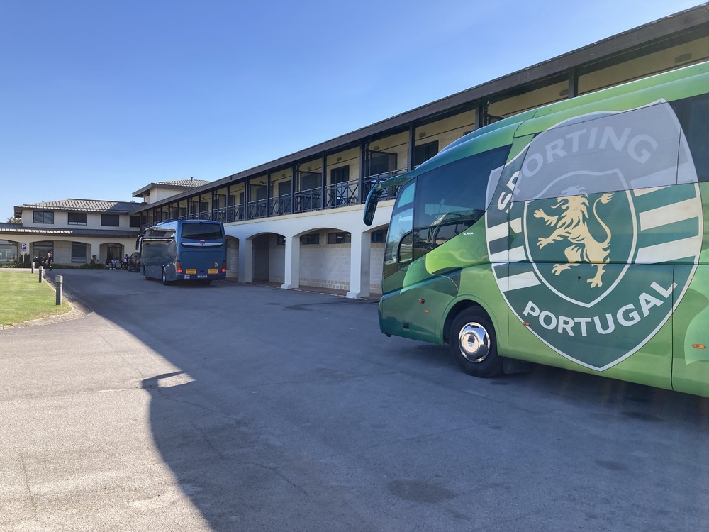 遅めの昼食を摂った後には、荷造りをし本日の試合会場であるスポルティングCPのトレーニング施設へとバスで1時間ほどかけ向かいます。SLベンフィカとライバルチームでもあり、同じくポルトガルの強豪クラブであるスポルティングCPは、クリスティアーノ ロナウド選手の出身クラブとしても有名で、施設へは限られた人のみ立ち入ることが許されています。