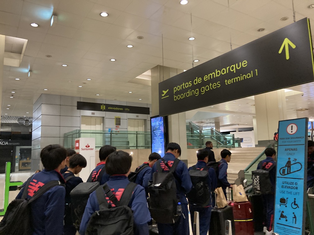 遠征5日目の7日(木)は昨日の夕方のスポルティングCPとの試合のため、遅めの夕食から就寝でしたが、早朝4時にホテルをチェックアウトし、次の遠征の目的地であるスペインのサン・セバスティアンを目指します。まずはリスボン・ウンベルト・デルガード空港へ。ここ数日の現地のTV番組やニュースでは現地時間7日(金)開催、ポルトガルプリメイラリーガ「オ・クラシコ」と呼ばれるSLベンフィカvsFCポルトの話題で賑わっており、空港の掃除スタッフの女性からも「今日ベンフィカが勝てばリーグ優勝が近づくわ!」と話しかけられる一幕も。