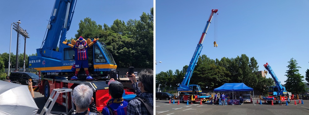 大矢運送社自慢の最新クレーン車を展示し、なんと今回は運転席で記念写真が撮れます!