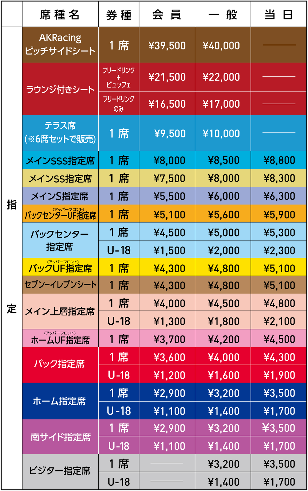 ※テラス席は、バックスタンドの北側(6ボックス)、南側(6ボックス)ございます。チケット購入時、北側・南側の指定は可能ですが、ボックスの指定はできません。
